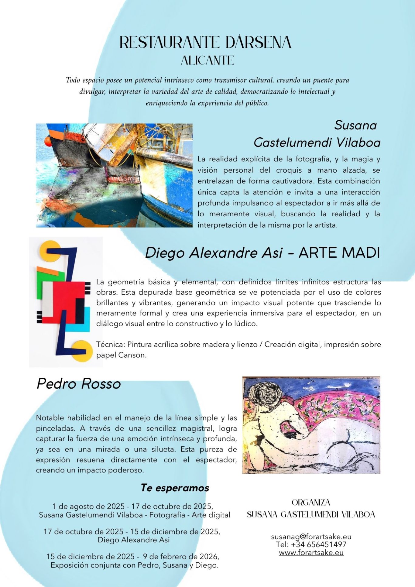I am architect, artist and enjoy organizing art-related events, bringing different contemporary art proposals at home, as painting, sculpture, interior design and special objects.